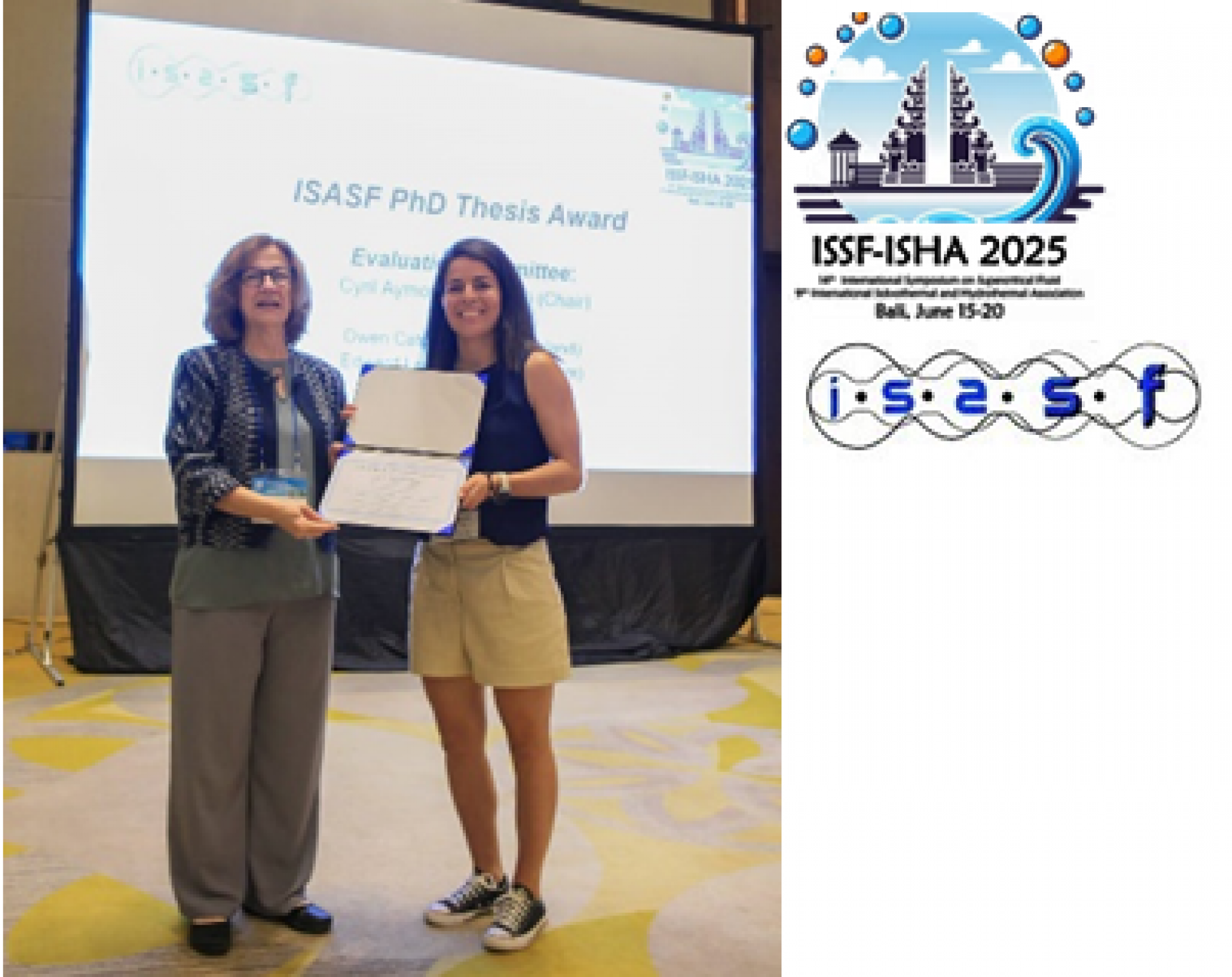 Ana Furtado was awarded with the Honorable Mention ISASF 2024 PhD Thesis Award in Supercritical Fluids by the International Society for the Advancement of Supercritical Fluids (ISASF) during the 14th International Symposium on Supercritical Fluids & 9th Conference of the International Solvothermal and Hydrothermal Association (ISSF–ISHA 2025) that held in Bali, Indonesia, from June 15th to 20th, 2025.